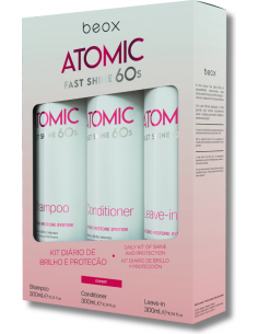 ATOMIC RECOVERY 60 s [DAY BY DAY] produktų linija - šampūnas, kondicionierius ir nenuplaunamas fliuidas-blizgesys Leave-in Shine - užtikrinanti ypatingą ir greitą efektyvumą siekiant plaukų kondicionavimo, atstatymo ir priežiūros: