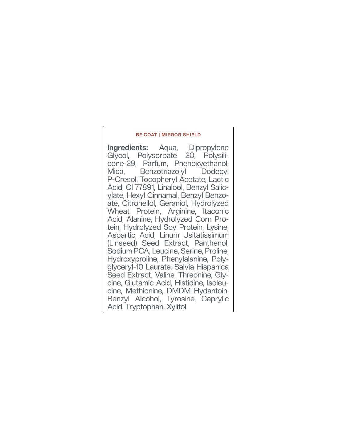 BE.COAT - Veidrodinį blizgesį plaukams suteikianti dulksna su apsaugos nuo drėgmės ir karščio efektu (BEOX, Brazilija)