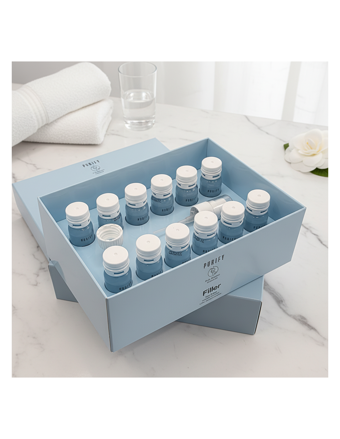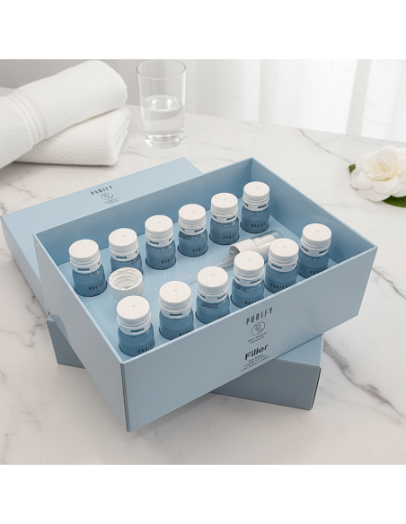 PURIFY FILLER - tai kompleksinė profesionalių plaukų priežiūros produktų linija ir procedūra, skirta trapiems, nualintiems plaukams, linkusiems lūžinėti ir trupėti {pvz., paveiktiems balinimo, šviesinimo, dažymo procedūrų ir agresyvių priemonių}, suteikianti plaukams esminio tvirtumo, lankstumo, tankumo bei apimties, kovojanti su senėjimo požymiais ("anti-age "poveikis), pripildanti plauko giluminę struktūrą ekskliuzyviniu hialiurono rūgšties bei keratino kompleksu, veikiančiu beprecedentės sinergijos principu.