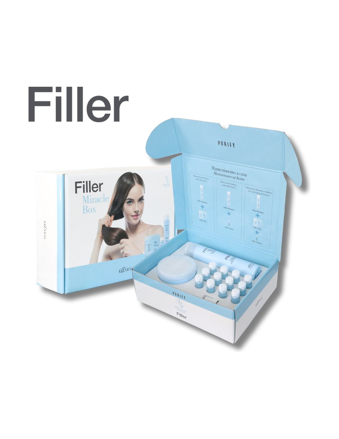 PURIFY FILLER - tai profesionali kosmeceutinių plaukų priežiūros produktų linija, skirta trapiems, nualintiems plaukams, linkusiems lūžinėti ir trupėti {pvz., paveiktiems balinimo, šviesinimo, dažymo procedūrų ir agresyvių priemonių}, suteikianti plaukams esminio tvirtumo, lankstumo, tankumo bei apimties, kovojanti su senėjimo požymiais ("anti-age "poveikis), pripildanti plauko giluminę struktūrą ekskliuzyviniu hialiurono rūgšties bei keratino kompleksu, veikiančiu beprecedentės sinergijos principu.
