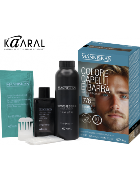 Människan - Beamoniakiai dažai plaukams ir barzdai - atspalvis 7/8 [naudojimui namuose, rinkinys dėžutėje, KAARAL, Italija]