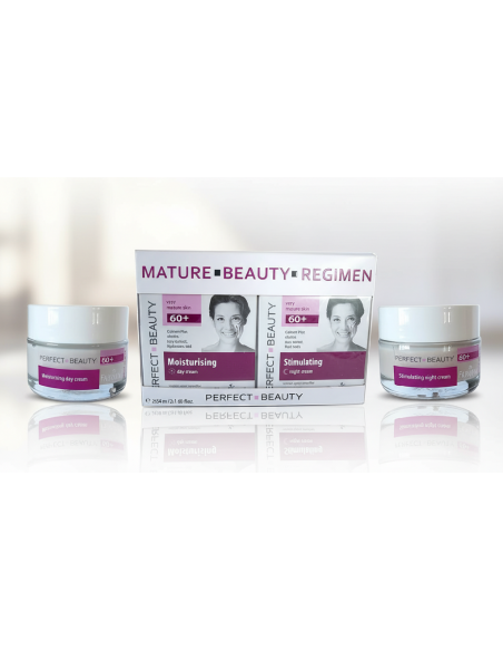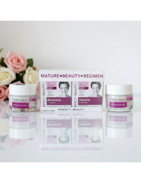 PERFECT BEAUTY rinkinys brandžiai odai 60+, 2 kremai veidui - dieninis drėkinantis ir naktinis stimuliuojantis (2 x 50 ml)