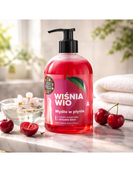 Gaivinantis ir vitaminų prisotintas skystas rankų muilas su saldžiarūgščio vyšnių aromatu, skirtas švelniai ir efektyviai valyti rankų odą. Suteikia malonų aromatą, drėkina odą ir puoselėja natūralų jos grožį.