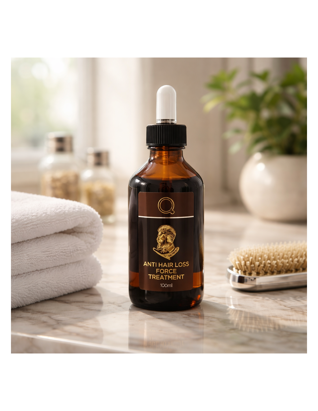 NAUDOJIMAS: Išplaukite plaukus MrQ šampūnu ir švelniai nusausinkite rankšluosčiu. Losjoną pipetės pagalba tepkite ant šaknų, lengvai masažuodami.