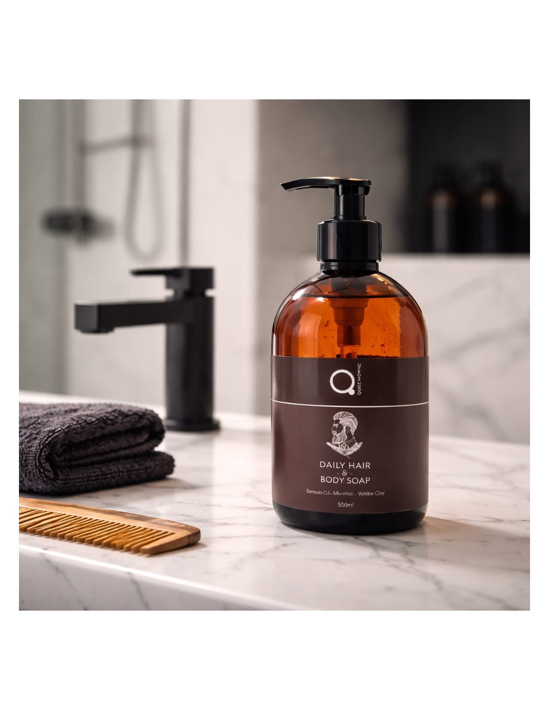 MrQ Vyriškas prausiklis kūnui ir plaukams, kasdieniam naudojimui, QURE HOMME, 500 ml