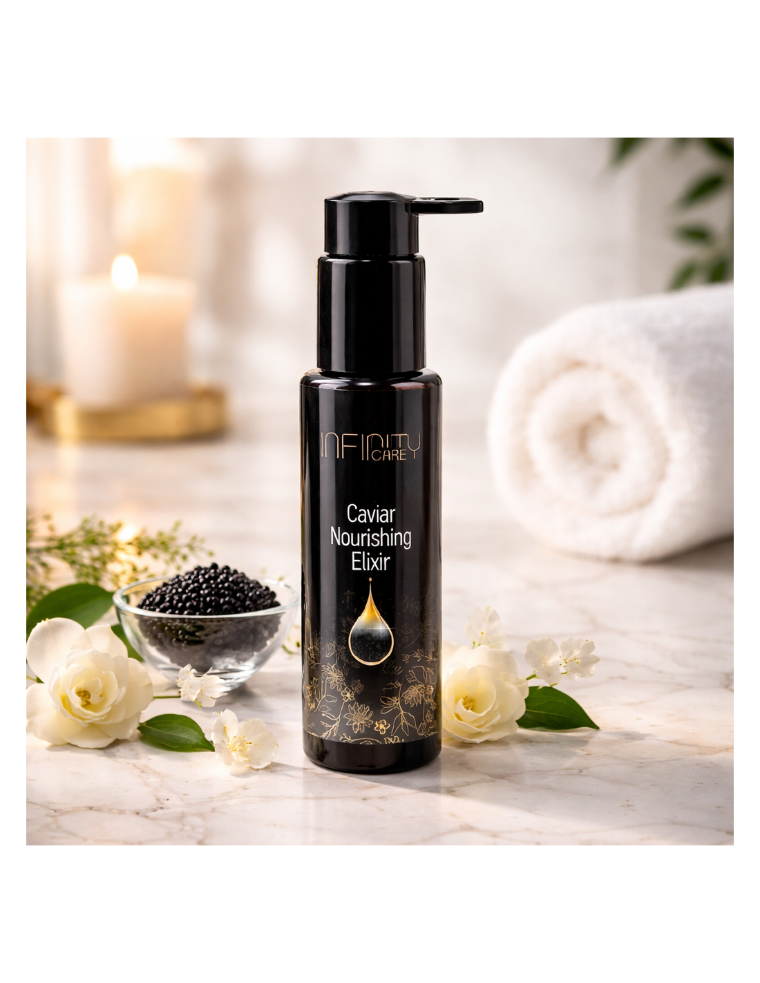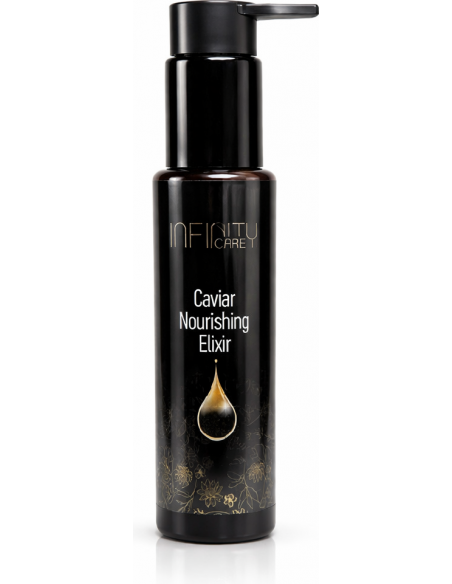 „Caviar Nourishing Elixir“ – prabangus plaukų serumas su maitinamaisiais ikrų baltymais, specialiai sukurtas plaukų stiprinimui ir atkūrimui.