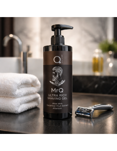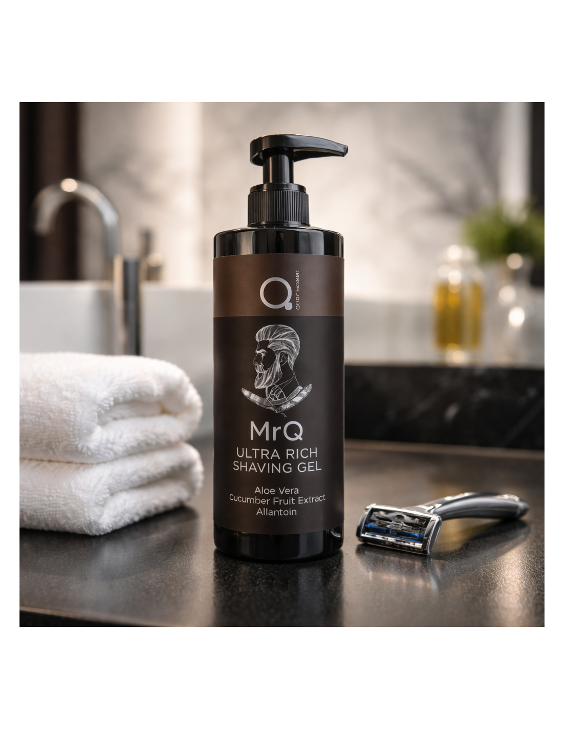 Atraskite prabangų, glotnų skutimąsi, kurį siūlo „Mr.Q Ultra Rich“ skutimosi gelis.