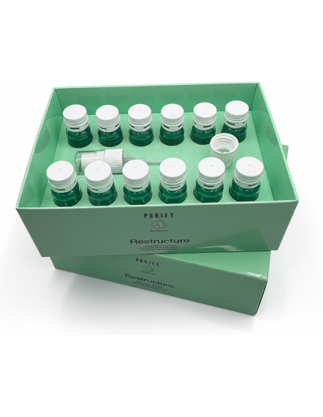 Постоянное применение лосьона PURIFY RESTRUCTURE обеспечивает длительный восстанавливающий и укрепляющий волосы накопительный эффект.