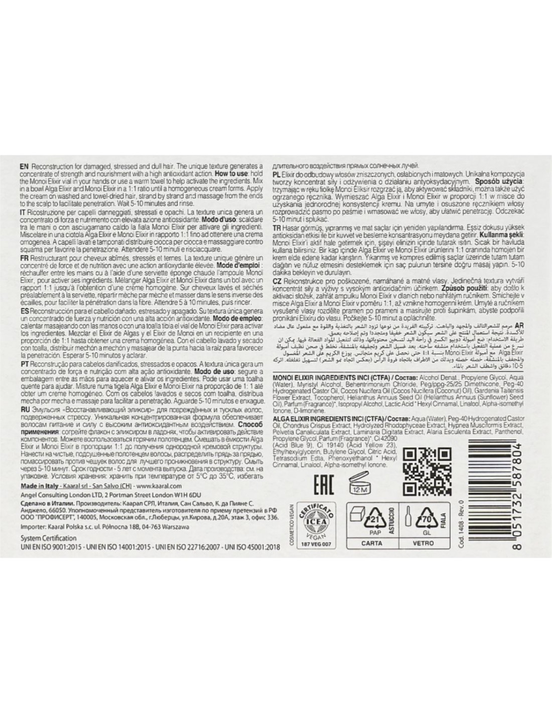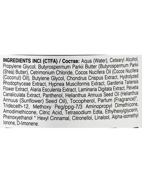 КОМПЛЕКС ВОДОРОСЛЕЙ. Это настоящий эликсир красоты и здоровья для поврежденных, стрессированных и лечебных волос. Водоросли богаты минеральными солями и витаминами, характеризуются чрезвычайно эффективными реминерализирующими свойствами, придавая волосам силу, устойчивость, эластичность и жизнь.